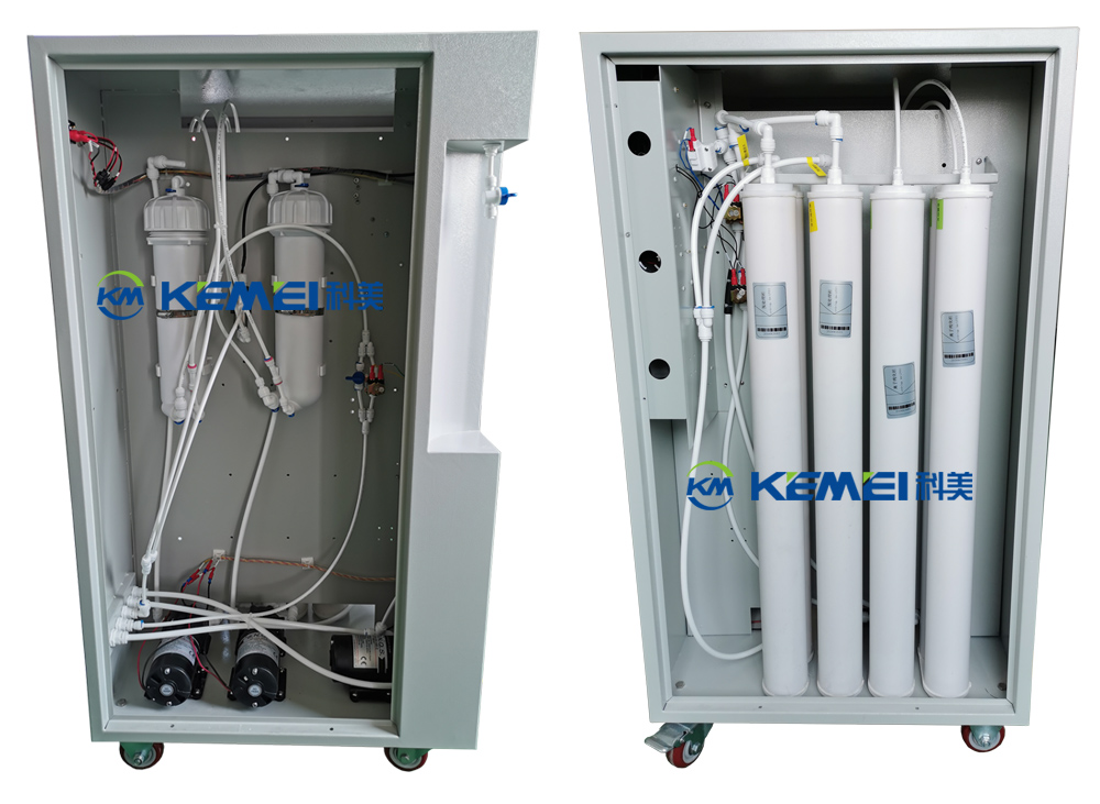 生(shēng)化超純水機有(yǒu)台式水機與立式水機,其中台(tái)式水機(jī)由主機和壓力桶(或水箱,水箱是組成中最常見但卻是最不能缺少的(de),主要有原水箱、純水箱兩大類,其次就是係統預處理單元(yuán)的三大保鏢(biāo)式過濾器(qì),都是人們常見的,分別是石英砂過濾器、活性炭過濾器以及精(jīng)密過濾器。軟化水裝置(zhì)是(shì)原水進入核心單元(yuán)前最(zuì)後一道工序,核心主機是二十世紀先進的反滲透(tòu)膜裝置(zhì),經過了主機之後(hòu)的水就能稱之為純水了,但是係統(tǒng)後續還會安裝有加藥裝(zhuāng)置以及清洗(xǐ)裝置和殺菌消裝置(zhì),因為個別生產會需要沒(méi)有微生物的純水,原水之所以會一(yī)路流過這些裝置,是(shì)係統中安裝有水泵,為整套係統(tǒng)提供所需的壓力。)二部(bù)分組成,主機右上麵為控製麵板(bǎn),用於(yú)主機的操作(zuò)及純水/自動分析儀進水水質的顯示,左麵為超純水臨時取水口(kǒu)。立式水(shuǐ)機由主機和水箱二部分組成,主機(jī)右上麵為控製(zhì)麵板,用於主機的操作及純水/自動分析儀進水水質的顯示,左麵(miàn)為超純水(shuǐ)臨時(shí)取水口。